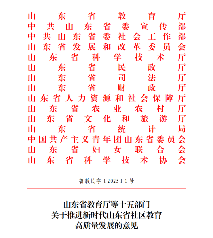 近日,山东省教育厅等十五部门联合印发《关于推进新时代山东省社区教育高质量发展的意见》(以下简称《意见》)。